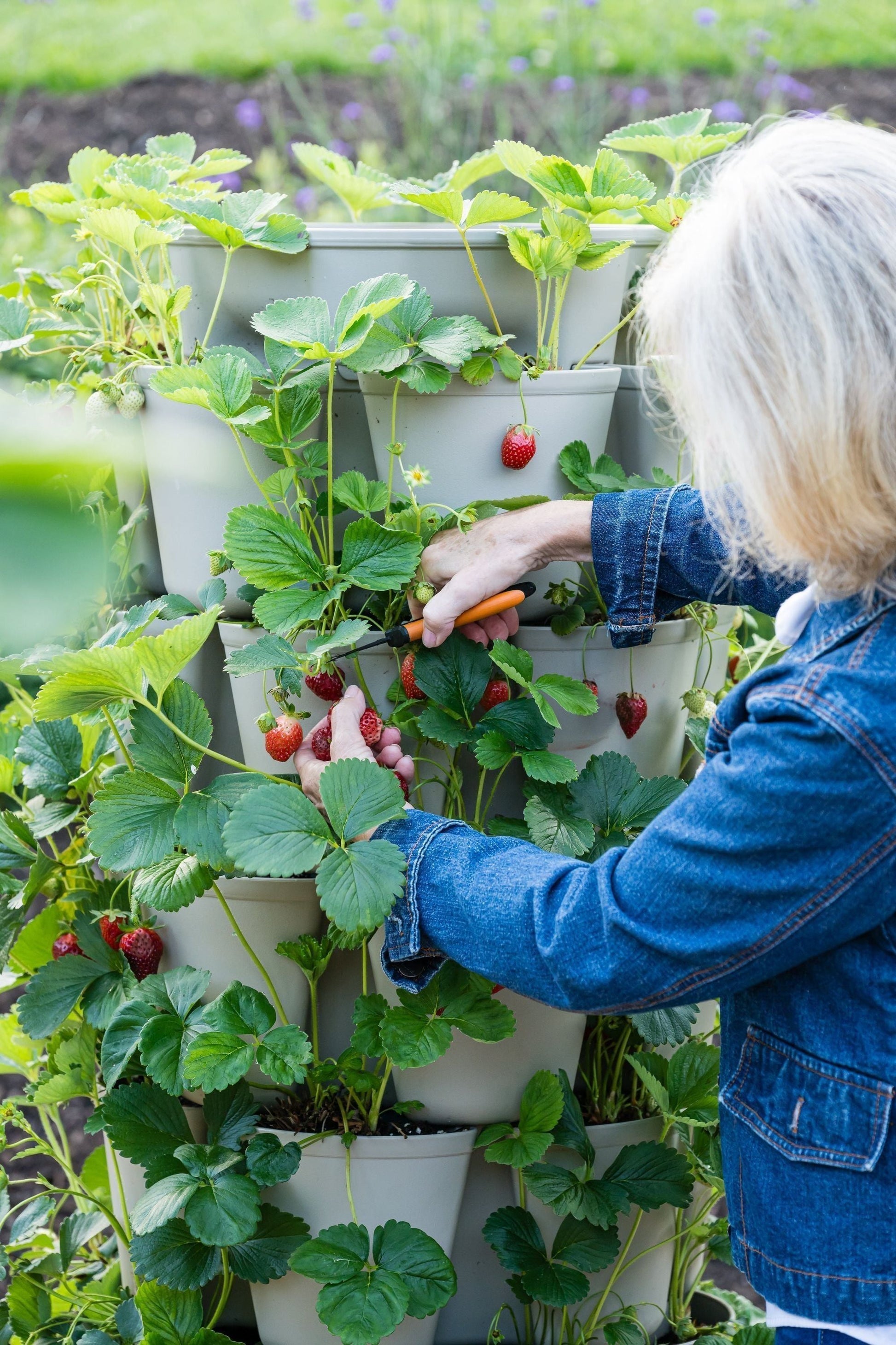 Turn your backyard into a gardening oasis with our patented seven-tier vertical planter proudly made in East Tennessee. Debuting in 2020, this free-standing vertical planter is perfect for growing smaller plants and root vegetables. With more planting pockets than any other vertical planter we offer, you’ll love the variety of leafy greens, root vegetables, and herbs that can be grown in the same footprint as the Original. See how it works and experience the joy of containerized gardening for yourself!